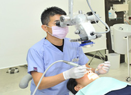 使用し、精度の高い確かな診療を行っています。 これまで見落としていた小さな患部の発見や、微小な虫歯感染が確認でき、削る量を最小限に抑えられます。 根管治療(歯の根本)では診療が困難な細部を拡大して見ることができるため、より精密な