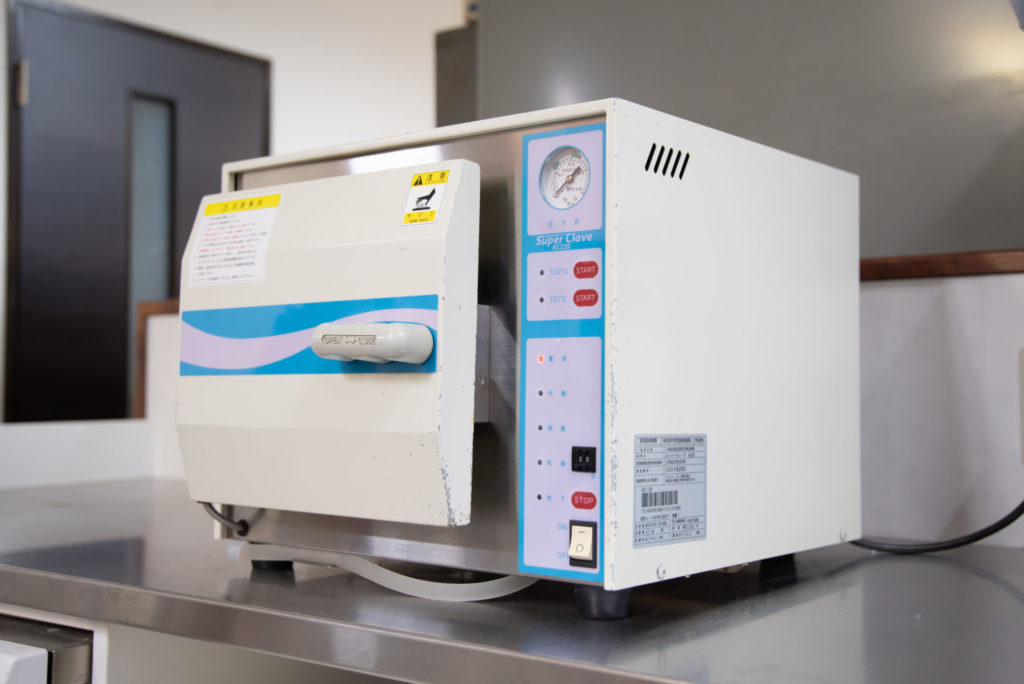 ・専用滅菌器(オートクレーブ)で器具を高圧蒸気滅菌